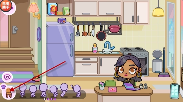 2、在屏幕左下角找到椅子形状的图标,点击它就能切换角色的表情,使你的角色呈现出不同的情绪状态。