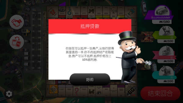 当玩家抵达无人持有的地皮时,可自行决定是否购买。若选择不买,银行会即刻对该地皮进行拍卖。银行拥有无穷的资金,然而建筑物数量有限,仅有32间房子与12间旅馆。在玩家彼此之间,能够开展金钱、物业以及保释卡等方面的交易。