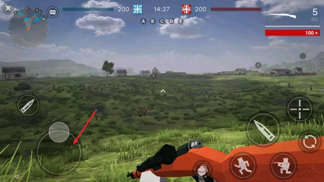 2、进入游戏后,左侧摇杆用于控制角色移动,需朝着敌人所在的位置行进。
