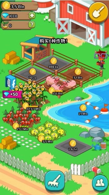 1、招募工人,购置土地,栽种玉米及各类农作物。收获永不停歇,为种植更多蔬菜、土豆与玉米,需持续采购种子!让你仿佛化身一位地道的乡村农夫。用心呵护你的农场动物,温柔照料它们成长!饲养猪、牛、马、鸡等各类家禽家畜!