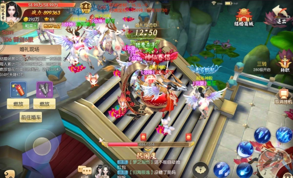在婚礼活动期间,每隔一小段时间就能自动积累经验值,每位参与者都有机会领取多份喜糖与红包福利,开启后能收获惊喜奖励。现场燃放烟花道具可提升氛围热度,当热度值达到特定浪漫数值时,还会触发全服红包雨的惊喜环节。