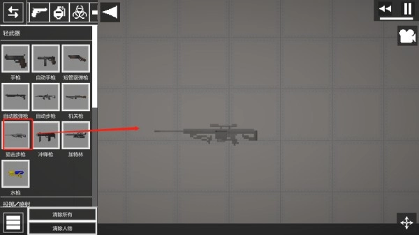 进入游戏地图后,左侧会呈现添加人物、武器、道具等多种选项。
