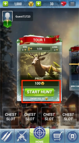 5、在热血的主界面里,点击START HUNT就能自动匹配对手,开启紧张刺激的狩猎对决。