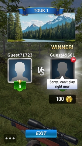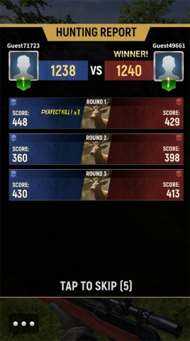 4、游戏支持与真人玩家展开PK对决,系统会依据您精准的射击角度给出竞争评分,您可以借此向顶级猎手发起挑战。