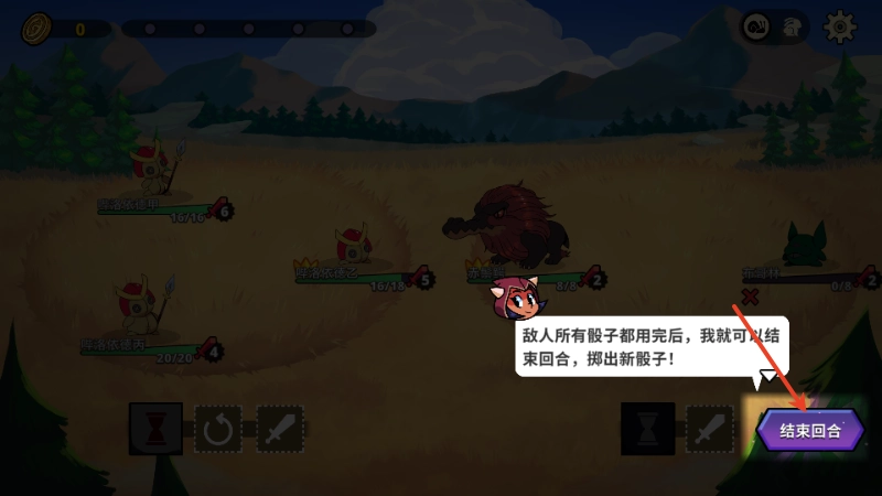 当敌人所有骰子用完,即可结束回合,掷出新的骰子
