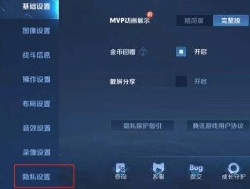 点击【隐私设置】,如下图所示: