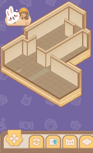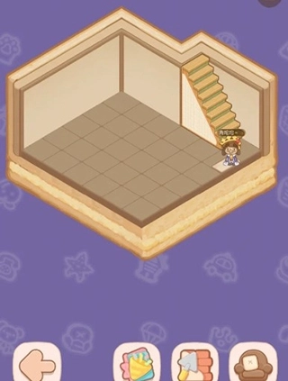 2、接下来玩家可以点击建造按钮,首先要简单搭建第一层:先铺好地垫,再放置一个楼梯,这样第一层就完成了!