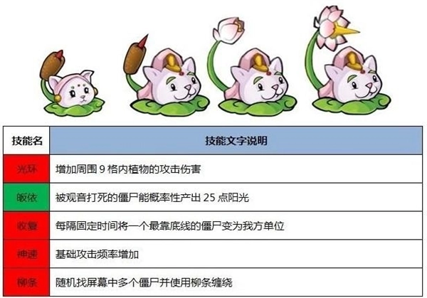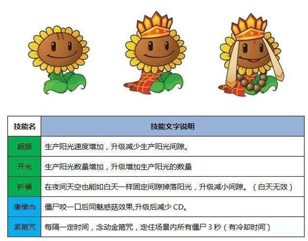 能大幅提升阳光的生成速率与总量,同时缩短生成间隔;其特色技能“紧箍咒”,可让所有僵尸陷入3秒的定身状态。