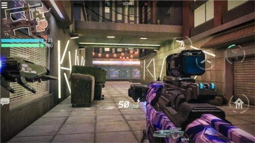 无尽行动游戏主打以未来科幻世界为背景,顶尖的3D物理引擎画面、高清逼真的场景地图,再搭配上5分钟一局的快节奏操作玩法,炫酷流畅的动作特效,可贴近真实般给人超强的代入感。而且对于玩法而言和传统的射击游戏类似,采用的是左边摇杆控制方向,右边按钮控制技能方式,不同的是右边有很多小的技能按钮,大多为特色武器召唤用的,比如无人机和高科技武器等,操作起来非常方便。