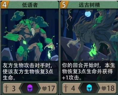 初始牌组里的树妖和金刚猩猩本身就能很好的配合苍耀骑士的技能,像是金刚猩猩每回合能够稳定给自己回血触发被动增加攻击力,生存能力极强的同时又不乏输出。