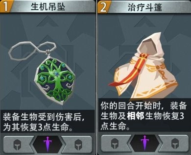 它使所有友方生物恢复5点生命,并在对手回合结束前免疫攻击伤害。(冷却:1场战斗),像这类回血减伤的技能对于新手来说非常友好又易于理解。