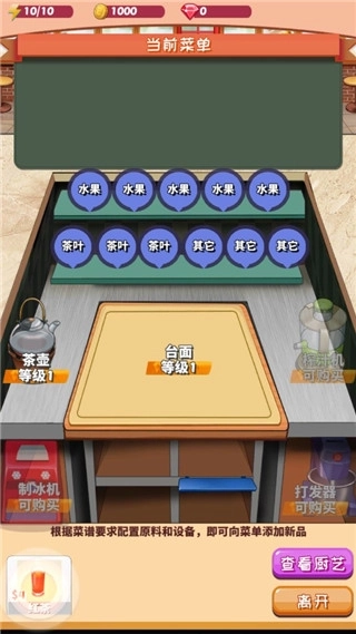还有其他的小技巧,例如说每天营业后都去玩,技术上来后基本每次都赢,前期存金币的好地方;还有每次买食材都凑够50金币以上结账触发讨价还价,要知道前期盈利少,升级机器价格高昂,一个金币也要省;雇佣员工后记得要时不时看看员工的心情,心情太差会影响技能发挥;卖流行的食物最赚钱;如果做错了饮料可以拖着杯子往下拉,倒掉杯子里的东西。