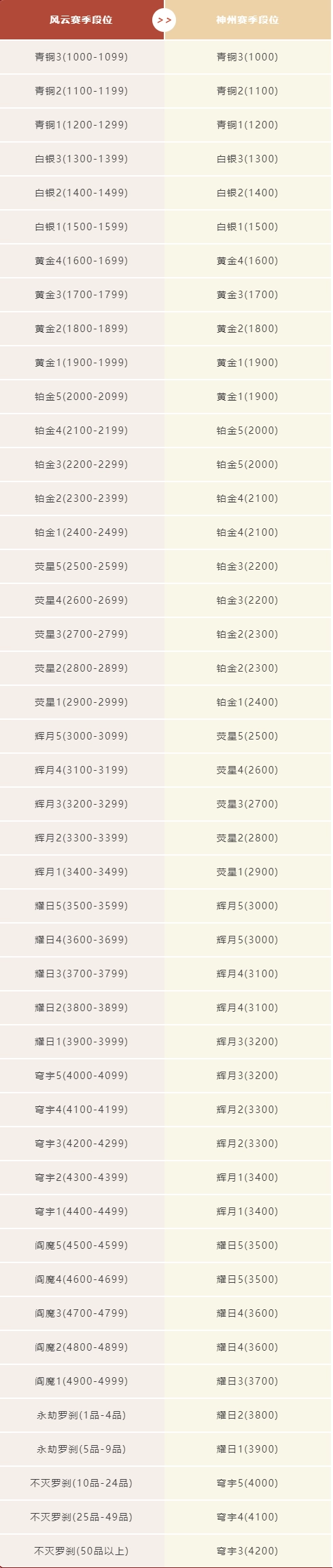 (二)关于论剑、地脉之战、人机讨伐这三种玩法的段位积分继承规则说明。