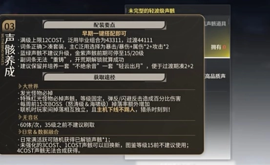 前期推荐主声骸荐推带紫鸟cost3 前期摩托,需要过支线,有就把主声骸换摩托。