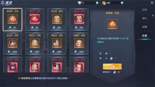 SR品质及以上的英灵可以解锁觉醒玩法,消耗相同的英灵即可对英灵进行觉醒,提升英灵的基础属性。