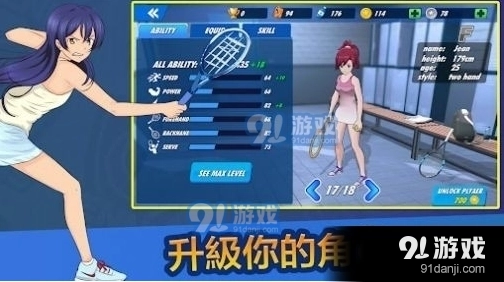 1、游戏里有着各式各样的角色,每个角色都具备独特的专长能力与打球风格。