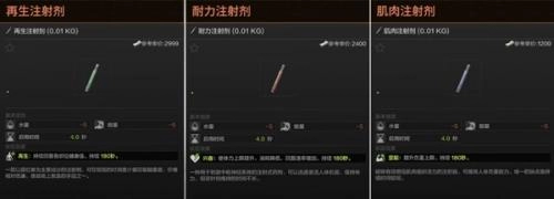 目前的药剂共有3种,它们分别是再生剂、耐力剂和肌肉剂。再生剂可持续回复各部位的健康值,在面对接下来可能会发生的持久战斗之前打上一个会很有用。耐力剂能降低体力消耗、增加体力上限和回复速率,是快速抢点/转移的利器。肌肉剂能提升负重上限,减轻负重带来的负面效果,先锋们搜索完物资准备撤离前可以打上一个,能让撤离更安全迅速。