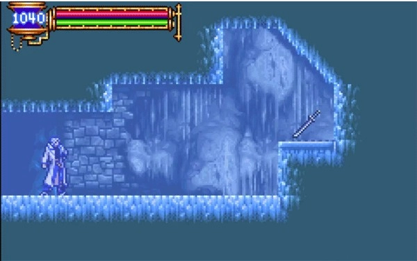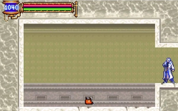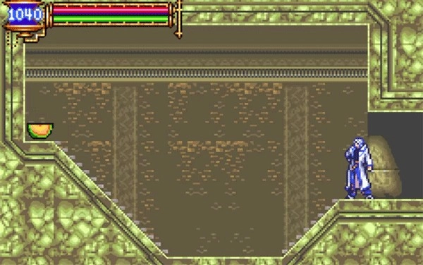 3、③号隐藏房间的位置在恶魔城藏书库存档点的最上方,沿着最上侧一直往左走会遇到一堵墙。