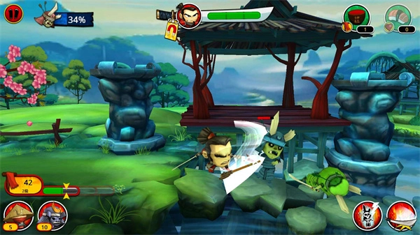 获得胜利后会展示通关战利品,通过更多关卡还能解锁新的武士英雄、盟友等。