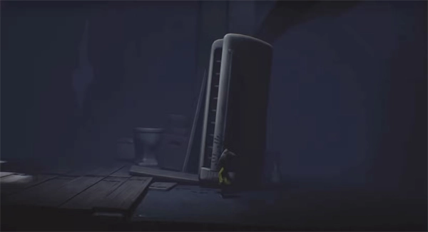走向冰箱,把冰箱门拉开。这时你会看到一颗诺姆从冰箱后面跑出来,跟着它穿过屏幕最右侧墙壁上的洞。穿过洞后你会进入一个狭小的缝隙,那里有另一盏灯笼和一只待着不动的诺姆。先把灯笼点亮,再抓住那只诺姆,给它一个拥抱。