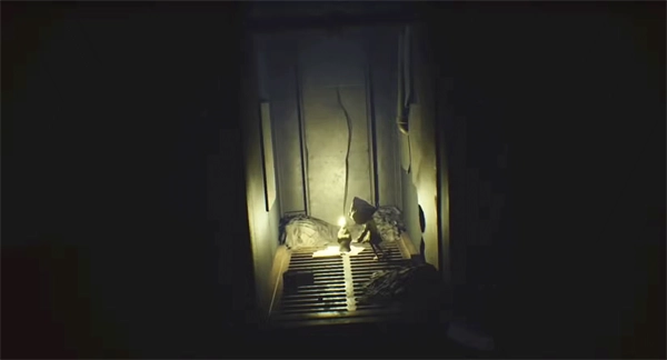 到隔壁房间后,你走不了几步就会踩空地板。别慌,这同样是剧情设定。最后你会被困在一间漆黑的屋子里,赶紧点火,继续往前走。