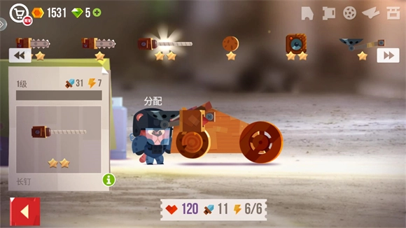 2、其他配件的功能如下:鱼钩能勾住敌人并拉近双方距离;升降机发射的气球若成功黏附在敌方车头,会使对方车头在2秒内处于升空状态;推进器可实现向前加速冲刺;反推器则能完成反向冲刺动作;铲子能够铲起敌方车头,有一定概率导致对方翻车(翻车与否主要取决于敌方车身的稳定性);反弹器在被敌人触发时会将敌人弹开;血量加护会在战车血量低于特定限度时启动,缓慢恢复战车的血量。