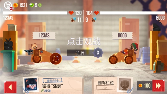7、对战时只需点击屏幕观战,小车会自动攻击出现的敌人。