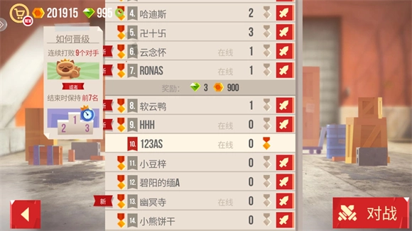 9、点击锦标赛即可参与排名,挑战对手并将其击败后,你就能取代他的排名;要是被其他玩家击败,你的排名则会下降。