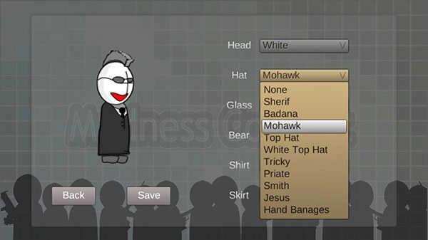 在定制面板中,你可以自由调整头部轮廓、佩戴风格各异的帽子与眼镜,设定肤色深浅与上衣款式。所有细节均可实时预览,确认无误后点击Save完成存档。