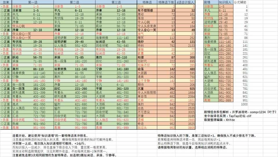 在连载开始之前,建议把知识量把控在4左右,这样能为后续像“没新意+平凡+序章”这类处于稳态的话数留出调整的弹性空间。当作品登上榜单顶端后,只需要保持知识量每次增加1,其他环节都可以放宽处理——不过要注意,有些话数有连载次数的限制,比如“平凡”“没新意”这类,具体的规则去查看对应的表格就能了解清楚了。
