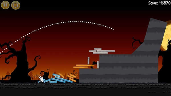 1-6:第一只鸟朝图中轨迹位置,击中左下角,干掉一个南瓜头,第二只鸟同样以一定角度斜插南瓜位置,(三星绝对拼人品,重复尝试了70多篇啊,苦逼有木有啊)