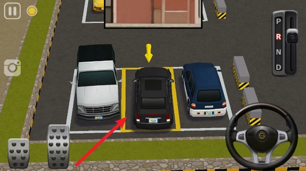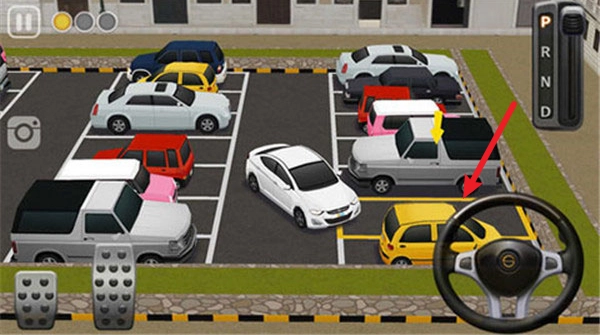 接下来看看实际操作步骤,如图所示,我们要操控目标车辆,把它停到黄色的停车位上。