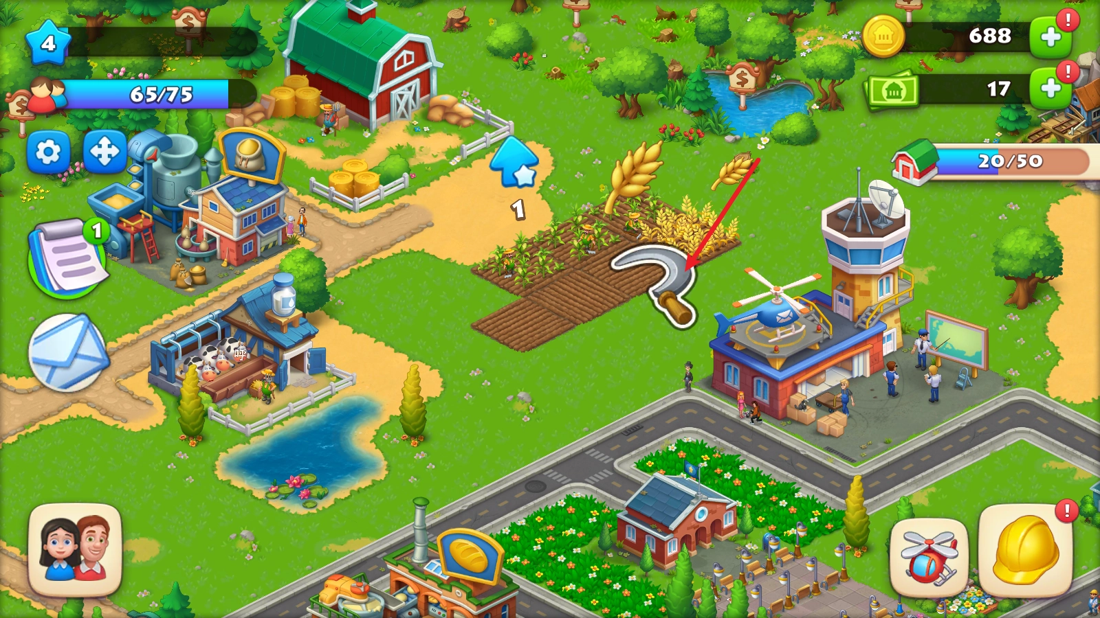 小麦成熟后,点击它即可拥镰刀进行收割。