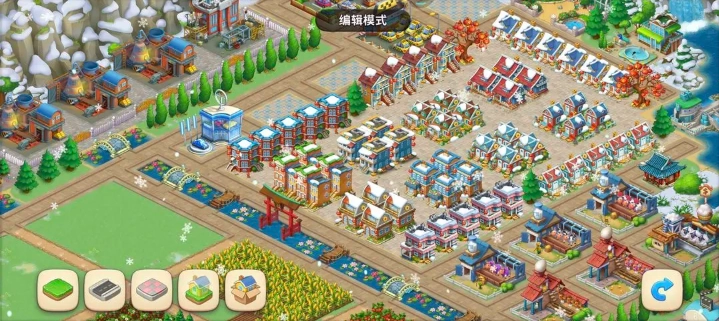 第四步是房屋与社区部分。鉴于土地资源不算充裕,且当前处于“半压级”的发展阶段(工厂、养殖场等设施数量较少),房屋和社区成为占据主要空间的建筑。现阶段无需增添过多建筑类装饰,直接依靠社区、房屋本身以及绿化树木即可完成基础布置;收集到的大型装饰(占地4格及以上的,若土地不足,占地2格的甚至所有非绿化类装饰也需一并收起)暂时收纳起来,留待日后再使用。