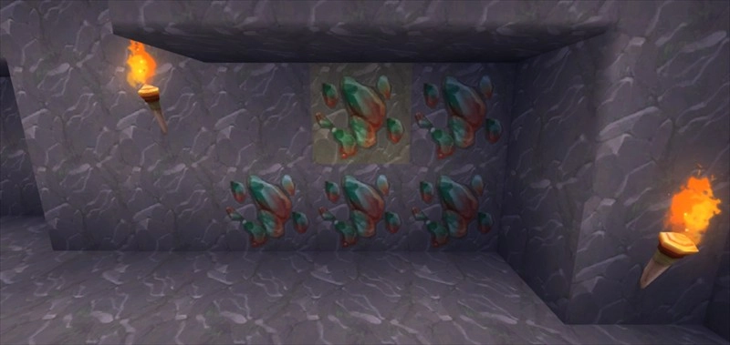 在洞穴里找到它的概率处于中等水平,而在浮岛上发现它的概率则相当高。若想获取它的原始矿块,需要使用铁镐或者品质更优的镐子。将其放入冶炼炉,并搭配一些煤炭进行冶炼,就能得到钛。