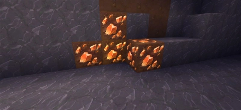 采矿时找到它的概率很高,需要用石头或更高级的镐子敲碎方块才能采集到矿石。它的掉落物可以放进冶炼炉里使用。
