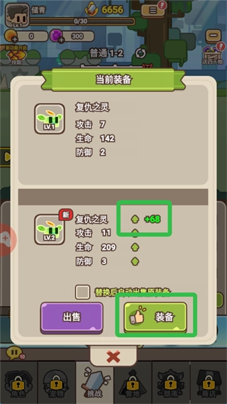 4、开出更高级的装备了,点击替换原来的。