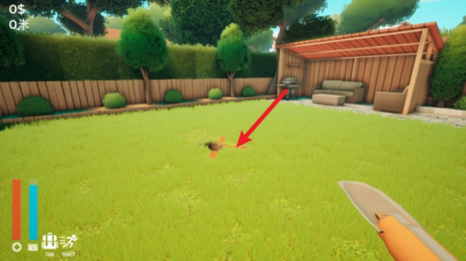 1、进入游戏后,在庭院区域内挑选一个合适的挖掘地点开展行动。