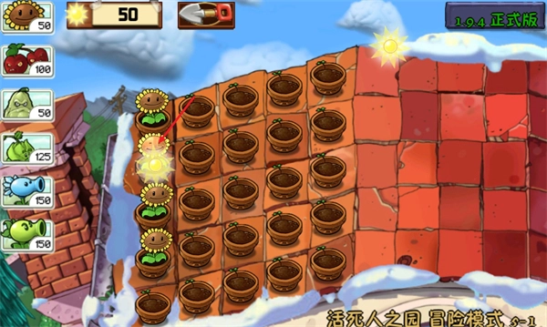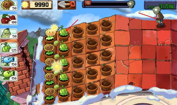 3、接下来就能获得充足的阳光来种植攻击型植物,一旦有僵尸出现,这些植物就会自动发起攻击。