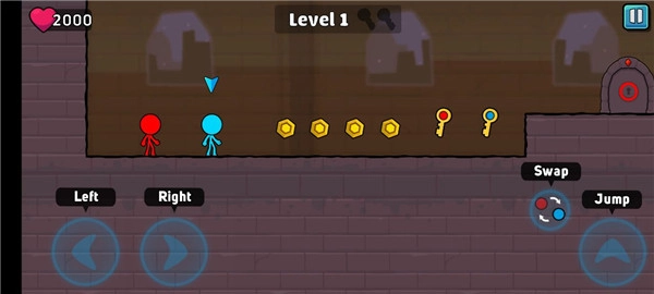 1. 玩家需要同时操控象征火之力的红色火柴人和拥有水之柔的蓝色火柴人,利用两者各自的独特特性来巧妙谜题、触发隐藏机关,从而开启通关的道路。