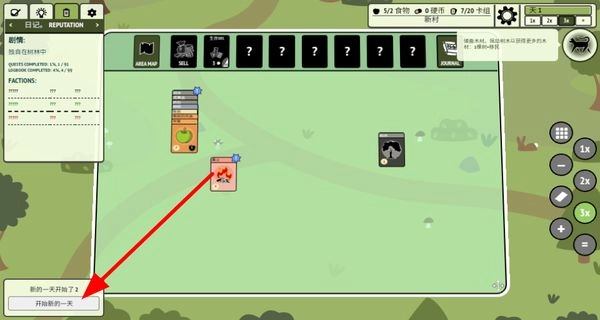 2、当出现新的一天开始的提示时,点击“开始新的一天”按钮,即可开启新一天的游戏内容与挑战。