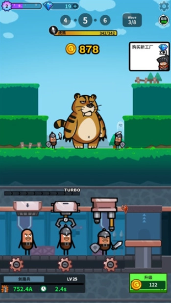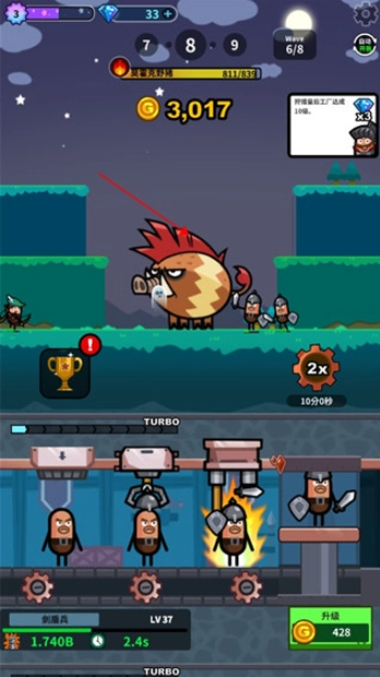 英雄工厂是一款轻松休闲的策略经营游戏。游戏里,你会碰到海量怪物,但无需担忧——你将拥有一座能批量生产英雄的超级工厂!工厂产出的英雄会毫无畏惧地冲向怪物,他们的使命就是消灭所有怪物!消灭怪物获得的金币与道具,能不断升级你的工厂,让它实现滚雪球般的壮大发展。