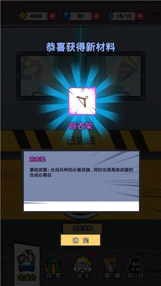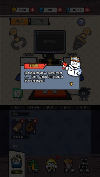 2、不同种的材料可以进行合成未知的武器或兵种。