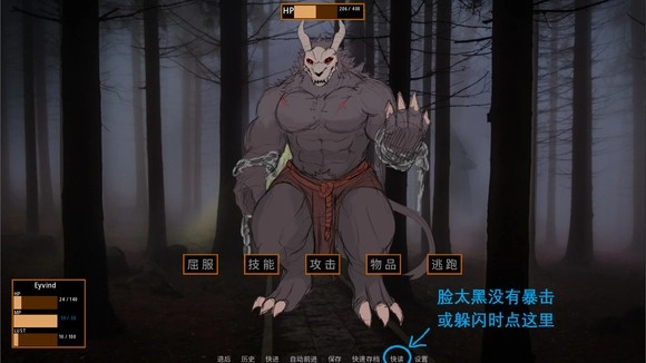 3. 启动攻击,当触发暴击或躲闪效果时点击快速存档,之后继续进行攻击操作,直到角色血量降至30点以下。