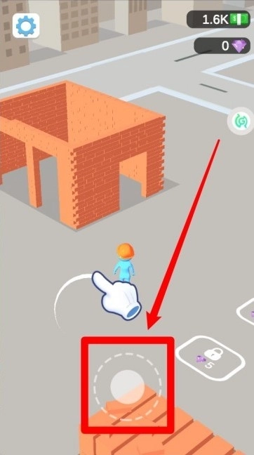 1.玩家通过屏幕左下角的虚拟摇杆控制角色移动,搬运砖块到指定位置,逐步完成高楼的基础搭建。