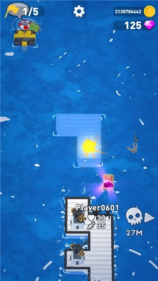 3、要是运气够好,你说不定还能收集到防御塔呢!它会直接变成你木筏的一部分!另外,你也能挑选额外的引擎以及其他各式各样的元素,用来提升自己的防御和进攻能力。
