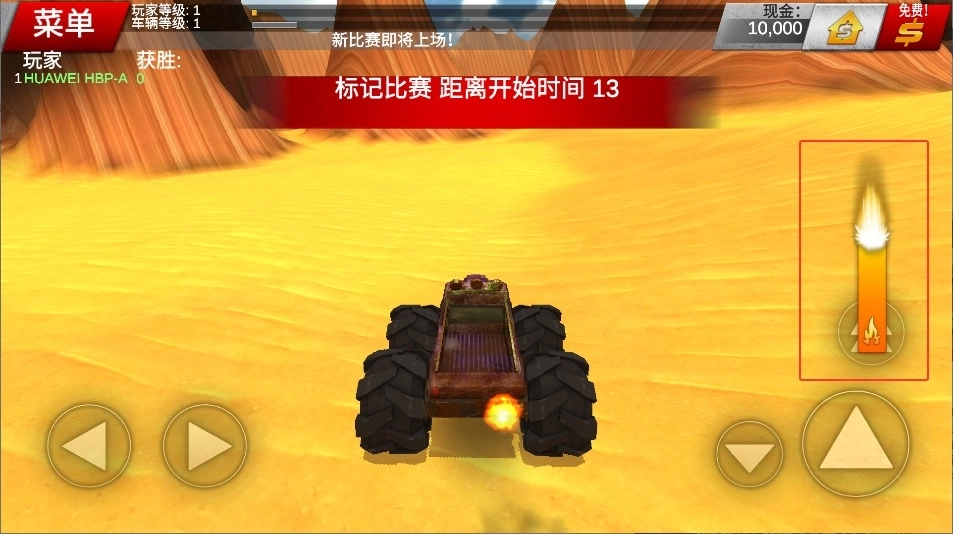 4、在直线路段时要记得点击加速按钮,这样可以瞬间提高车速冲过终点,多练习几次就能把握好时机。