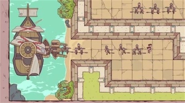 1、游戏里的关卡中会有外来船只运送大量敌军,玩家得及时布置防御手段。