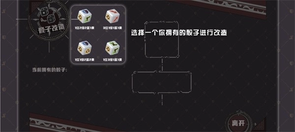 8、至于改造格子,玩家可以挑选一个骰子进行改造,以此获取不同的效果,也可以选择直接离开。