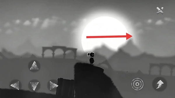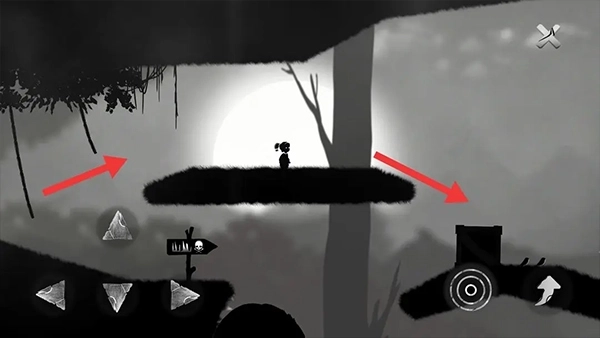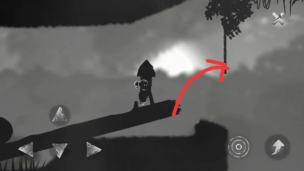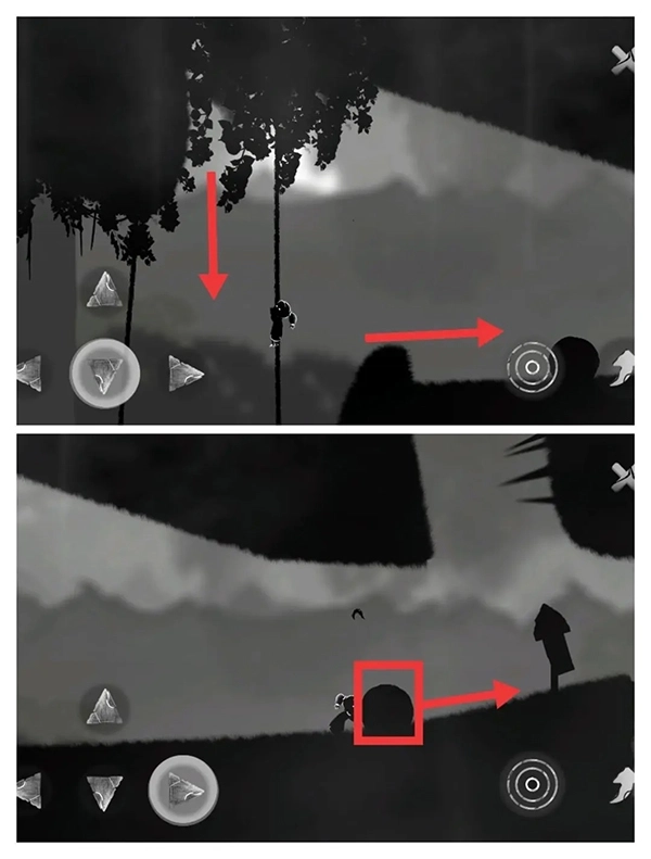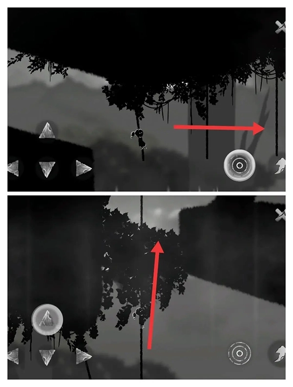⑤靠近藤条后会触发人类的返祖机制,学着像猿猴那样借助藤条摆动前行。要留意操控方向键,让女孩的重心发生偏移,这样就能更接近右侧的藤条了。